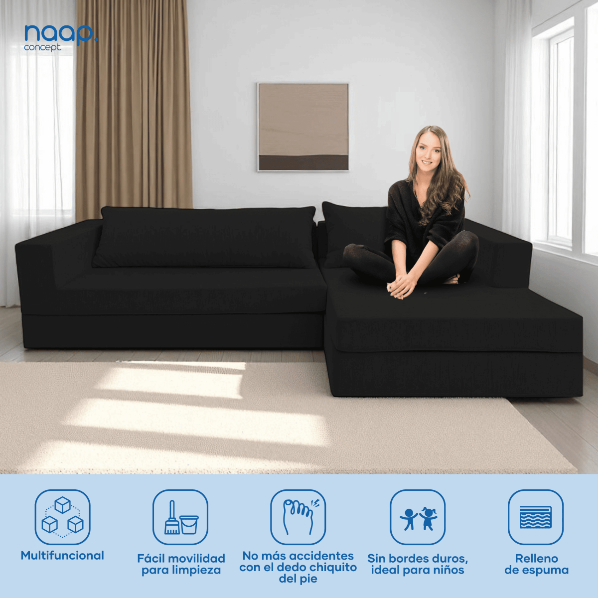 La Sala Modular Milán es perfecta para quienes buscan diseño contemporáneo, comodidad total y flexibilidad sin límites. Su estructura 100% de espuma la hace ligera, segura y fácil de adaptar a cualquier espacio o momento del día.