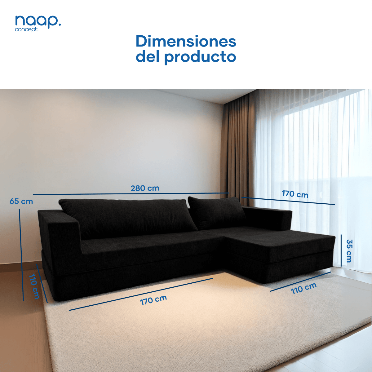 🛋️ Modular y funcional: Cada módulo mide 110 cm de profundidad y 35 cm de alto, permitiéndote crear una sala en L, una cama amplia o un espacio lounge en segundos.